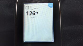・昼食時血糖値は低く、85mg/dlでした(よく動いたので低血糖になりました)。