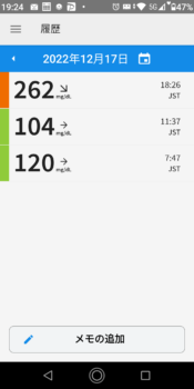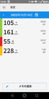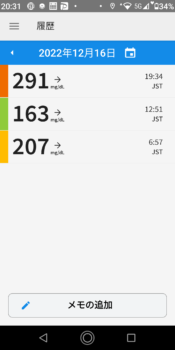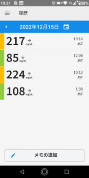 本日のデータ(朝食前血糖値を解かりやすくするため、昨夕からとします)