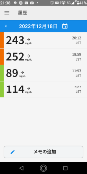 四日前のデータ(朝食前血糖値を解かりやすくするため、昨夕からとします)