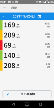 本日のデータ(朝食前血糖値を解かりやすくするため、昨夕からとします)