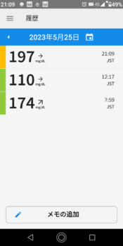 | 2023-05-25 | 血糖値 | 食事 | 超即効性インスリン 注射量 | 持続性インスリン 注射量 |