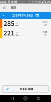 | 2023-05-26 | 血糖値 | 食事 | 超即効性インスリン 注射量 | 持続性インスリン 注射量 |