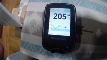 ・夕朝食前血糖値は高く、205mg/dlでした。