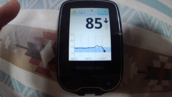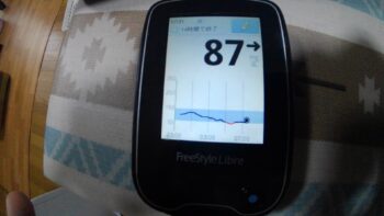 ・朝食前血糖値は低く、87mg/dlでした(昨夕食は高血糖でしたが、インスリン注射量はまだ多いほどでした)。