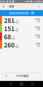| 2022-08-25 | 血糖値 | 食事 | 超即効性インスリン 注射量 | 持続性インスリン 注射量 |