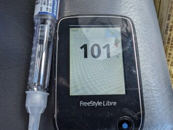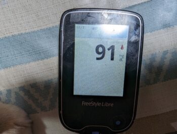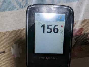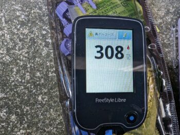 ・昼食時血糖値は高く、308mg/dlでした(朝食時に低血糖だったため、遅めに打つつもりがインスリン注射を忘れてしまいした)。