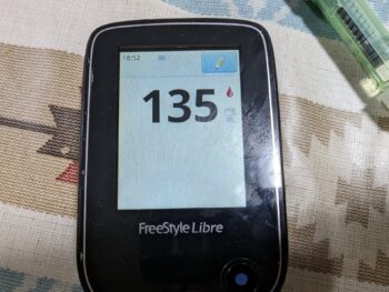 ・夕食前血糖値はほぼ良好で、135mg/dlでした。