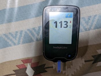 ・夕食前血糖値はほぼ良好で、113mg/dlでした。