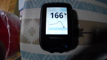 ・昼食前血糖値は少し高く、166mg/dlでした。