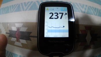 ・朝食前血糖値は高く、237mg/dlでした。(一度、高血糖になると、良い値にするのが、大変です。)