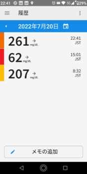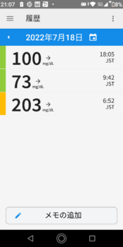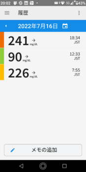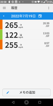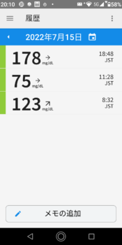 本日のデータ(朝食前血糖値を解かりやすくするため、昨夕からとします)