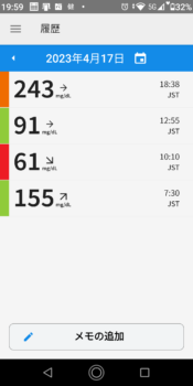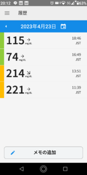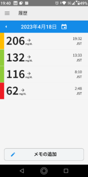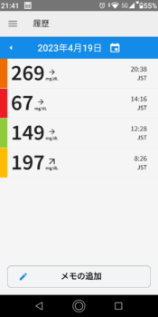 本日のデータ(朝食前血糖値を解かりやすくするため、昨夕からとします)