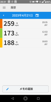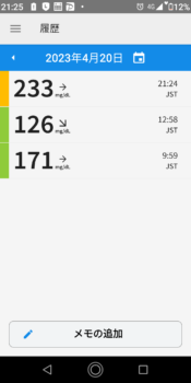 ・昼食時血糖値は少し高く、173mg/dlでした。