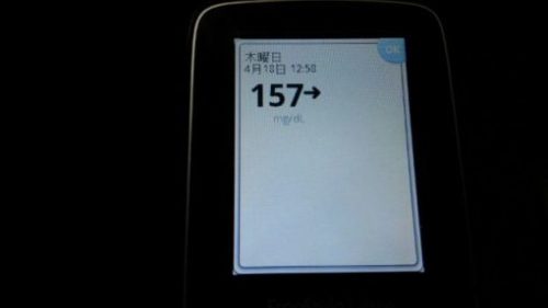 ・昼食前血糖値は少し高く、157mg/dlでした。