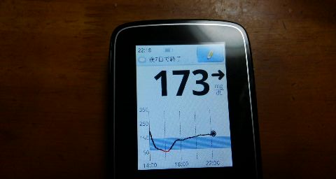 ・夕食前血糖値は少し高く、173mg/dlでした。
