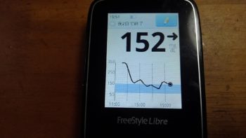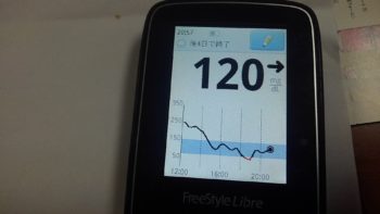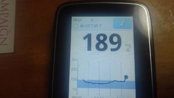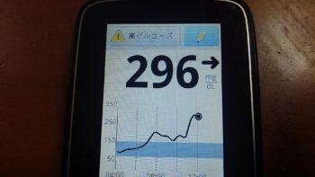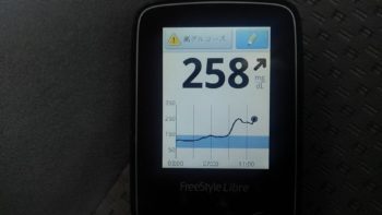 血糖値が高いのは、現場作業中に、ジュースを飲んだためです。午後からは、デスクワークでした。