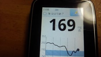 ・昼食前血糖値は少し高く、169mg/dlでした。