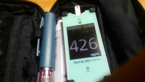 ・夕食前血糖値はインスリンが効いていないように高く、426mg/dlでした。測定した時、とても気分が悪くなりました。