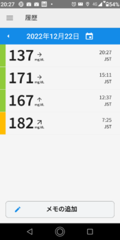 | 2022-12-20 | 血糖値 | 食事 | 超即効性インスリン 注射量 | 持続性インスリン 注射量 |