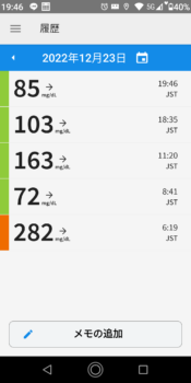 | 2022-12-23 | 血糖値 | 食事 | 超即効性インスリン 注射量 | 持続性インスリン 注射量 |
