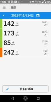 | 2022-12-25 | 血糖値 | 食事 | 超即効性インスリン 注射量 | 持続性インスリン 注射量 |