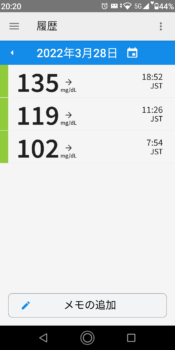 | 2022-03-28 | 血糖値 | 食事 | 即効性インスリン 注射量 | 持続性インスリン 注射量 |