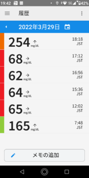 | 2022-03-29 | 血糖値 | 食事 | 即効性インスリン 注射量 | 持続性インスリン 注射量 |