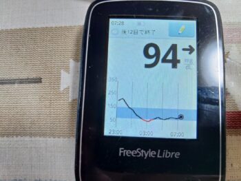 ・朝食前血糖値は低く、94mg/dlでした(夜間低血糖になりました。昨夕食の何故が低かったようです)。