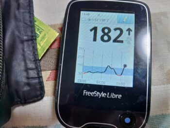 ・昼食前血糖値は少し高く、182mg/dlでした。