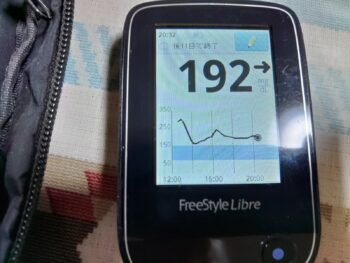 ・夕食前血糖値は少し高く、192mg/dlでした。