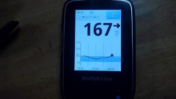 ・朝食前血糖値は少し高く、167mg/dlでした。