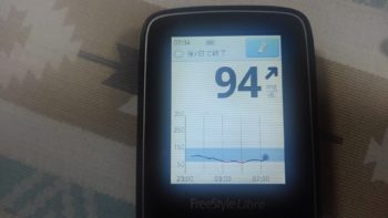 ・朝食前血糖値は低く、94mg/dlでした。(久しぶりの平均インスリン注射量で、血糖値がうまく収まりました。)