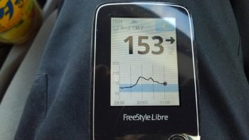 ・昼食前血糖値は少し高く、153mg/dlでした。(今朝の仕事は早朝からきついと思い朝食時のインスリン注射量を1単位減らしました。)