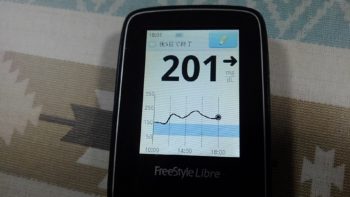 ・夕前血糖値は高く、201mg/dlでした。(午後3時頃、低血糖になったので、缶コーヒーを1本飲んだら、高くなりました。)