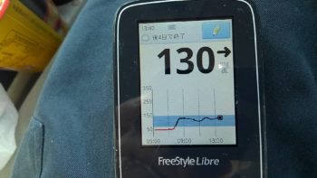 ・昼食前血糖値は少し高く、130mg/dlでした。(今朝の血糖値が低かったので、インスリン注射量を減らした結果です。)