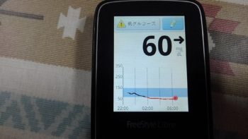 ・朝食前血糖値は低く、60mg/dlでした。(昨夕食は、予想以上にカロリーが低かったようです。)