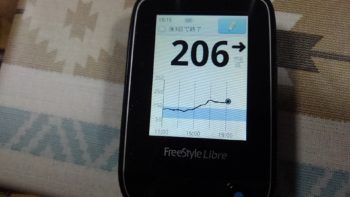 ・夕前血糖値は高く、206mg/dlでした。(昼食時のインスリン注射量が少なかったようです。)