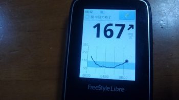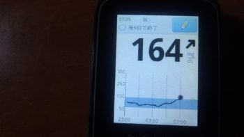 ・朝食前血糖値は少し高く、164mg/dlでした。