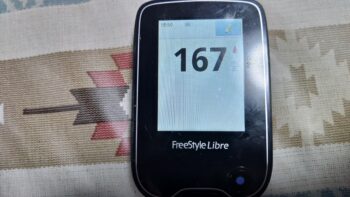 ・夕食前血糖値は少し高く、167mg/dlでした。