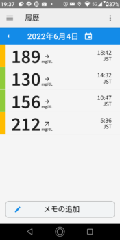 | 2022-06-04 | 血糖値 | 食事 | 即効性インスリン 注射量 | 持続性インスリン 注射量 |