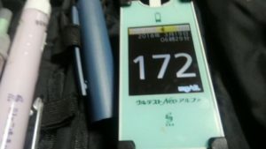 ・朝食前血糖値は高く、172mg/dlでした。