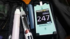 ・朝食前血糖値は高血糖で、247mg/dlでした。昨夕食のカロリーが、かなり高かったようです。