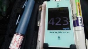 ・夕食前血糖値は高血糖で、423mg/dlでした。