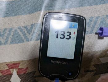 ・昼食時血糖値はほぼ良好で、133mg/dlでした。