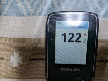 ・夕食前血糖値は良好で、122mg/dlでした。