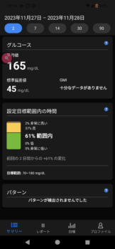 本日のデータ(朝食前血糖値かりやすくするため、昨夕からとします)