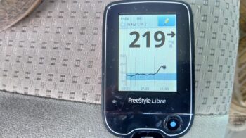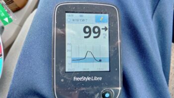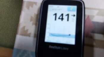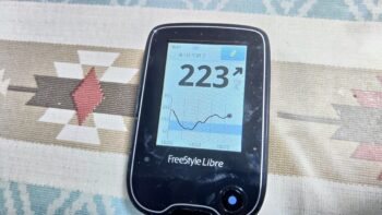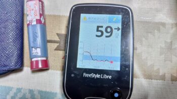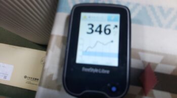 ・夕食前血糖値は良好で、346mg/dlでした(菓子パンをもらったのでカッ麺と一緒に食べたのですが、インスリン注射量を増やさずに打ったので、高血糖になりました)。
