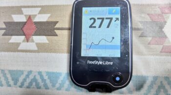 ・夕食前血糖値は高く、277mg/dlでした(昼食前時に低血糖になり、インスリン注射量が少ないとどうしても高血糖になります)。