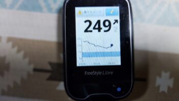 ・朝食前血糖値は高く、249mg/dlでした(昨夕食後すぐにシュークリームを食べた結果です)。