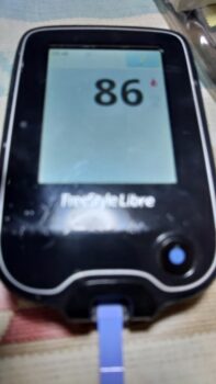 ・夕食前血糖値は少し高く、163mg/dlでした。